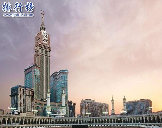 皇家钟塔酒店位于沙特阿拉伯王国的伊斯兰教圣城麦加。建筑高度601米,共120层。不仅是世界高楼排名第三名,也是为全球最高的饭店建筑。每逢重大节庆和大朝时,从钟塔上发射16条光柱,向天空直射10公里高,光彩多目。