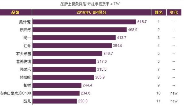 2016中国果汁饮料排行榜(按销量排行)果汁饮料十大品牌