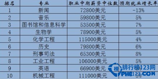 排行榜,品牌排行榜虽然经济收入和职业前景永远是人们考虑就读研究生院时的决策因素,但充实而富有挑战性的职业生涯可以帮助人们实现个人追求,这样的因素也必须予以考虑。虽然音乐或图书馆和信息科学相关职业的预期就业增长率不高,但这对于那些追求更有意义人生的求学者来说不太可能成为一个阻碍。