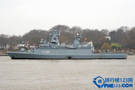 由Blohm+Voss等三家船厂建造,服役于德国海军,共5艘。用于水面巡逻,防空,近岸任务。装备有76毫米Ota超快炮,RAM防空导弹,RBS 15MK3反舰导弹。柴油动力,最大航速26节。
