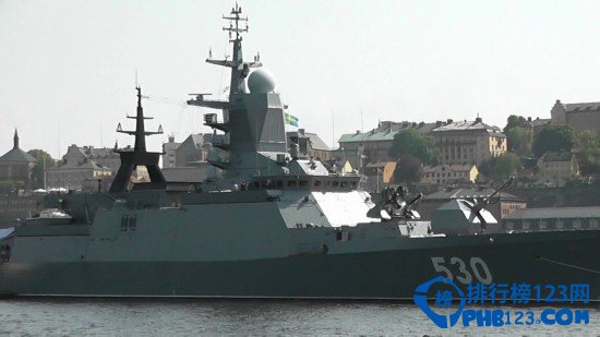 6.俄罗斯Buyan级护卫舰 由Almaz船厂建造,服役俄罗斯海军。用于巡逻,浅水和内河作战。装备100毫米A-190炮,Igla防空导弹,A-215多功能火箭,AK-306近防系统。柴油动力,最大航速28节,最大航程1500海里。