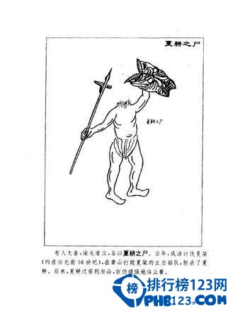 如果要给僵尸做一次评比,最厉害的当属刑天!《山海经·海外西经》:形天与帝争神,帝断其首,葬之常羊之山,乃以乳为目,以脐为口,操干戚以舞。