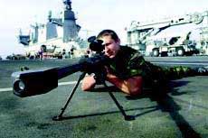 正在使用M90狙击步枪进行射击训练的美国海军士兵