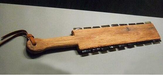 长度约1公尺左右,由于阿兹特克文明的冶铁技术落后,因此使用了这种将打磨锐利后的黑曜石片镶嵌在木棍上的武器,同样能够造成可怕的伤害。目前已无真品,最后一件真品在1884年一次博物馆火灾中被烧燬。这也是世界十大禁止冷兵器之一,威力可是不小。