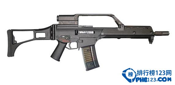 1995年列装德国武装力量的这款突击步枪,采用北约通用的5.56毫米口径弹药,结构简洁,可靠性高。30发弹夹用透明塑料制成,可迅速了解剩余弹量。如需持续的火力压制,可将两至三个弹夹连在一起供弹,或者换装100发弹鼓。加挂枪榴弹发射器后,可发射40毫米枪榴弹。目前全世界有40多个国家在使用这款突击步枪。