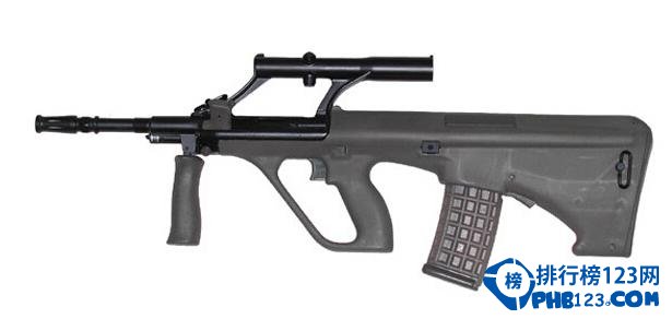 这款通用步枪1977年列装奥地利陆军时,给枪械制造技术带来了许多革命性的飞跃。它采用了非常规布局,具有模块化设计,大量使用了人工合成材料和新式合金。该枪重量减轻了,火力却十分凶猛,可根据不同任务需要使用标准型、精简型、卡宾枪型和轻机枪型枪管,在射速、精度等不同方面各擅胜场。