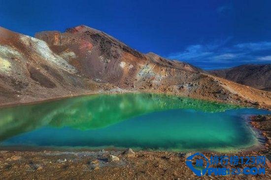 新西兰汤加里罗国家公园的死火山口,是火山爆发频繁的地带,在荒凉的山顶上有一汪碧绿的湖泊,神秘又惊艳,就像是山顶上镶了一块祖母绿宝石。尽管好奇号火星探测车没有在火星找到湖泊。但我们可以想象,在由火山岩形成的粗糙又荒凉无比的山顶上,湖水闪耀着祖母绿宝石光芒,就存在于某个外星球上。