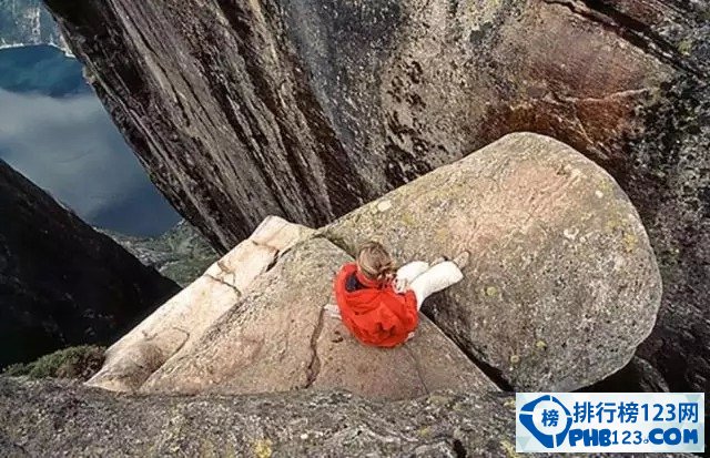 这个在挪威罗加兰郡的奇景,重力最后还是让这颗989公尺高的巨石掉下来了。
