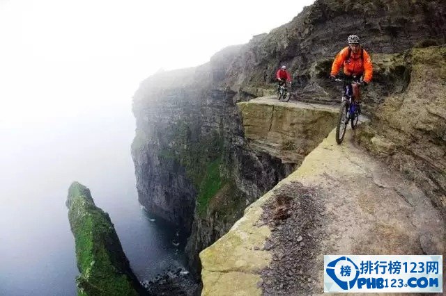 在爱尔兰,这些恐怖的非正式自行车道又称作”疯狂的悬崖”。这些车道的宽度大多都没有超过120公分宽,也可以看到路径有摇摇欲坠的倾向。