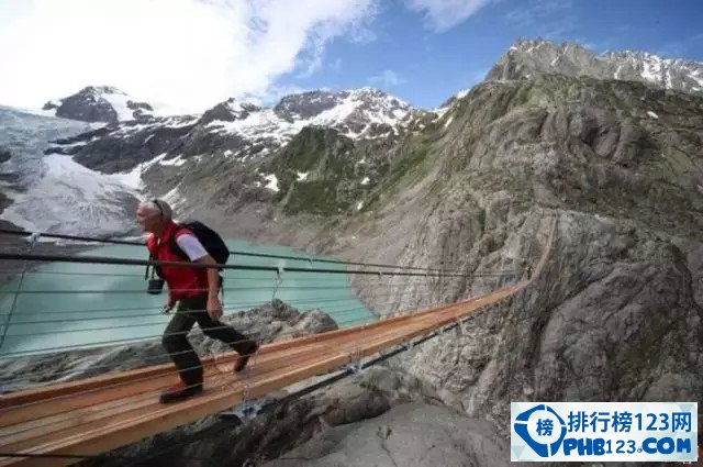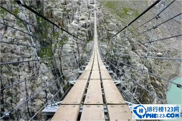 瑞士阿尔卑斯山的Trift吊桥在半空中100公尺处、全长有170公尺长、0.9公尺宽,还有着绝美的风景。