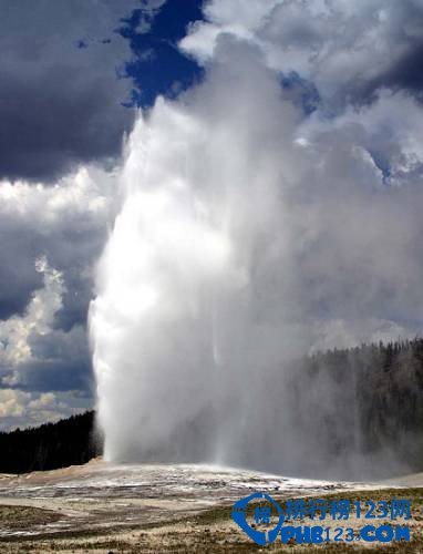 老忠实喷泉位于美国黄石公园内,是最著名的间歇泉之一。老忠实喷泉一次喷发,可以将8400加伦(约合31798升)的沸水喷到145英尺(约合44米)的高空。一般情况下,这种喷发会持续一分钟到五分钟左右。它之所以被称为“老忠实”,就因为它总是有规律地喷发,每隔45分钟到2小时肯定会喷发一次。它始终如一的忠实程度受到世人的喜爱。老忠实喷泉由地下的熔岩提供动力。整个黄石公园区域坐落于一个由超级火山所形成的巨型盆地之中,这个超级火山大约爆发于62万年前。
