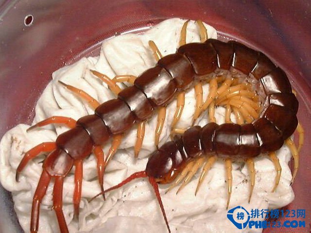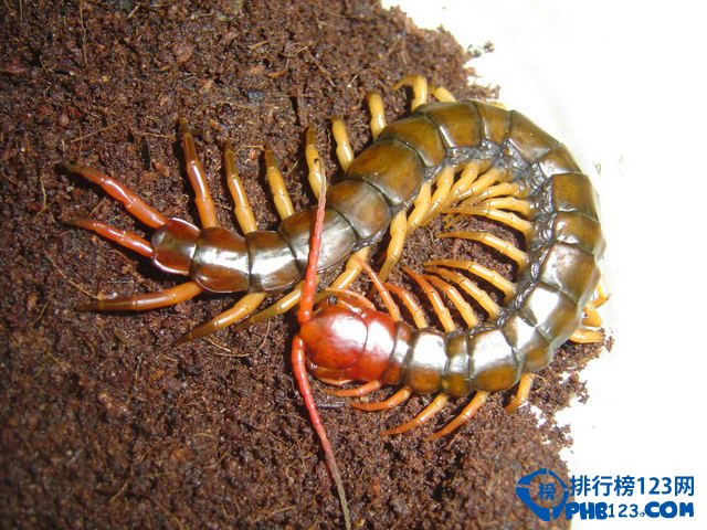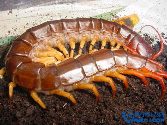 蜈蚣为陆生节肢动物,身体由许多体节组成,每一节上均长有步足,故为多足生物。科学家已发现的蜈蚣共有7842种,其中包括5种多足蜈蚣。排行榜123网(www.336c.com)带大家来认识一下,全球十大著名蜈蚣。