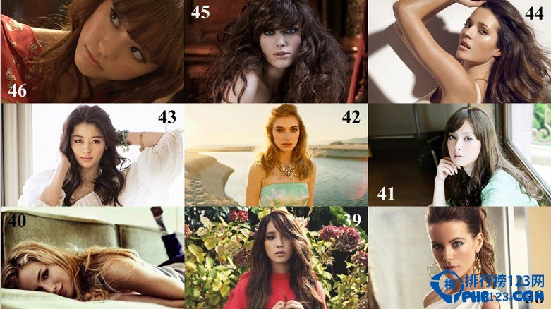 排行榜,品牌排行榜这份榜单中,韩国美女上榜较多,After School成员Nana、miss A秀智、宋慧乔、少女时代泰妍挤入榜单,After School NaNa更是被评为第二名,被封为“亚洲最美脸蛋”。