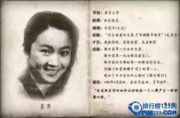 龚澎毕业于燕京大学历史系。在重庆时,在周恩来的领导下,成为中共第一位新闻发言人。毛主席对她也是称赞有加,说她是天生丽质。