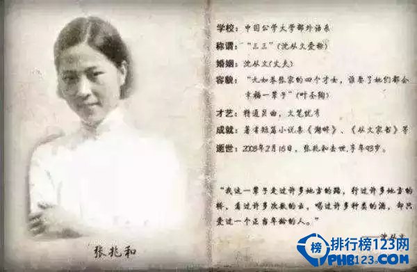 张兆和对沈从文的创作影响很大,在《边城》等小说中,更是直接把她作为文学想象的原型。而她本人,也曾发表短篇小说集《湖畔》、《从文家书》等。