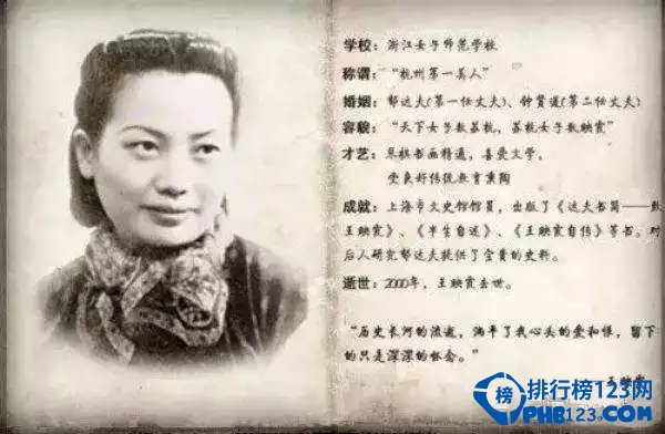 王映霞,中国浙江杭州人,当年“杭州第一美人”。在当时有“天下女子数苏杭,苏杭女子数映霞”一说,王映霞一生中的两次婚事都轰动全城。