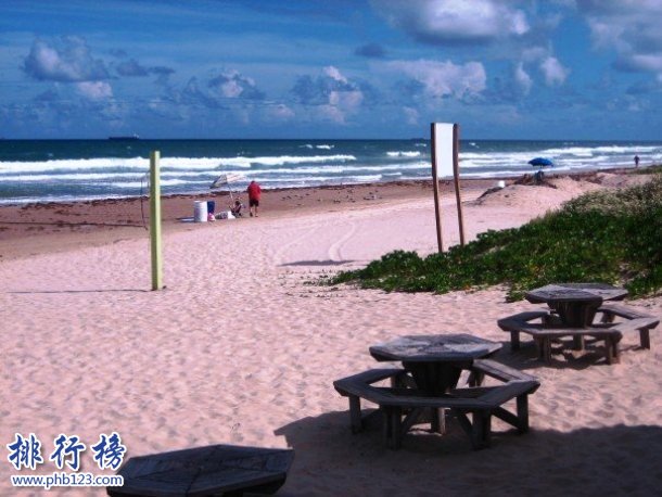 帕德里岛海滩位于帕德里岛的海岸,是德克萨斯州最大的屏障岛屿和世界上最长的屏障岛屿,同时也是美国最长的海滩。这个海滩总长度为113英里,以白色沙滩而闻名,同时还是几种海龟的栖息地。