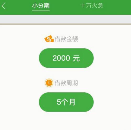 想要借到2000元,必须使用小分期借款,也就是借款2000钱分五个月还完,总共要还2500元。