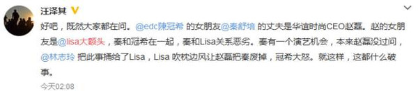 还有一群挺陈冠希的网友,“我相信冠希,不会无缘无故骂人。吃瓜坐等”、“以陈老师的作风不会无缘无故开撕的”、“陈冠希属于真性情的人,他不会说谎”。