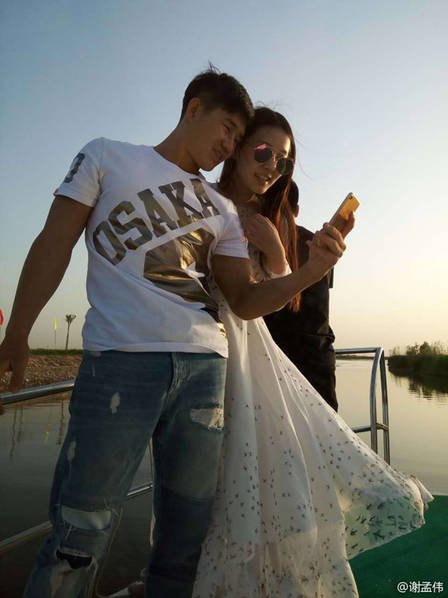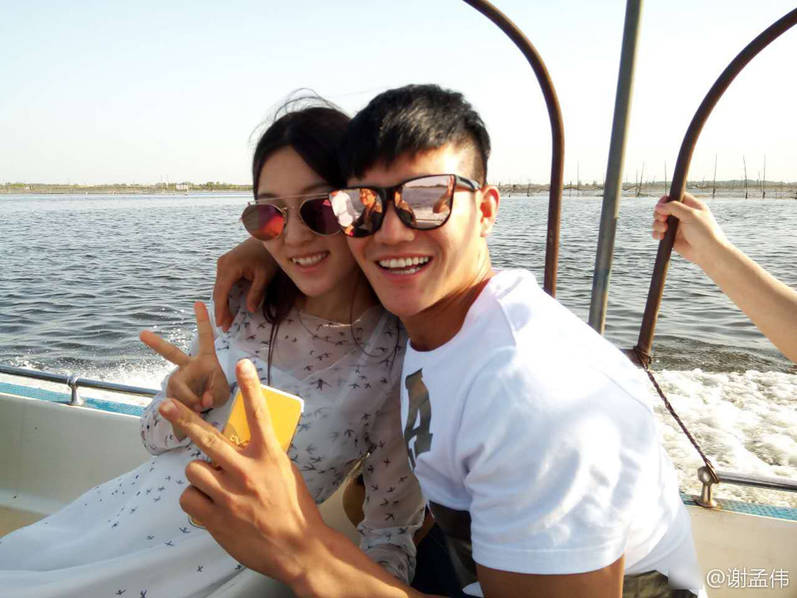 谢孟伟与女友亲密自拍。(资料图)