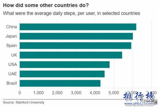 2017年世界各国步行数排行榜