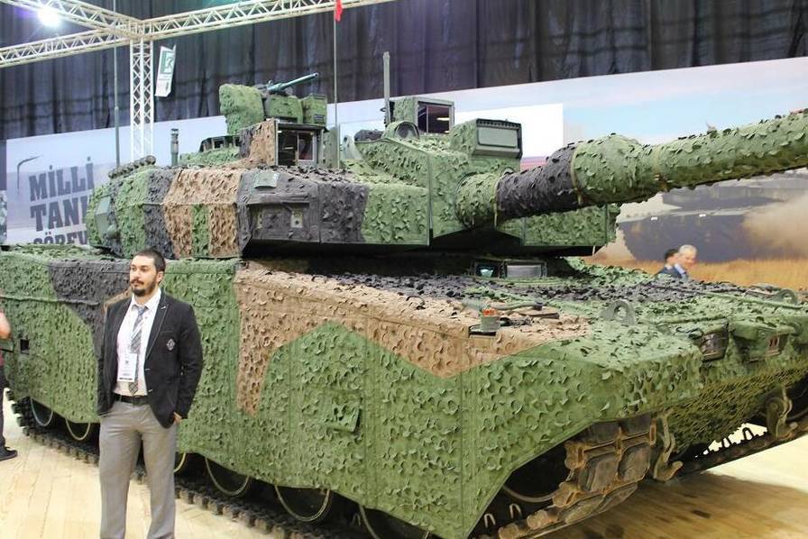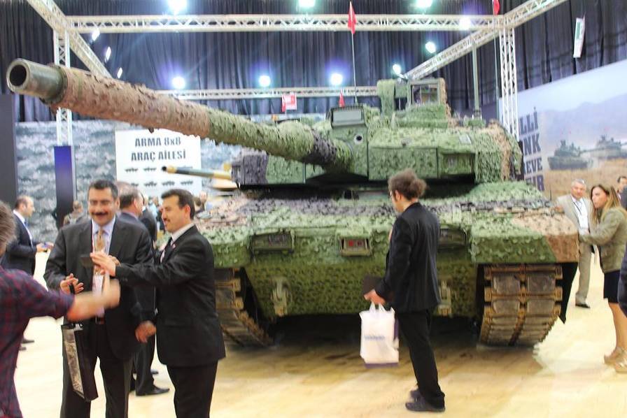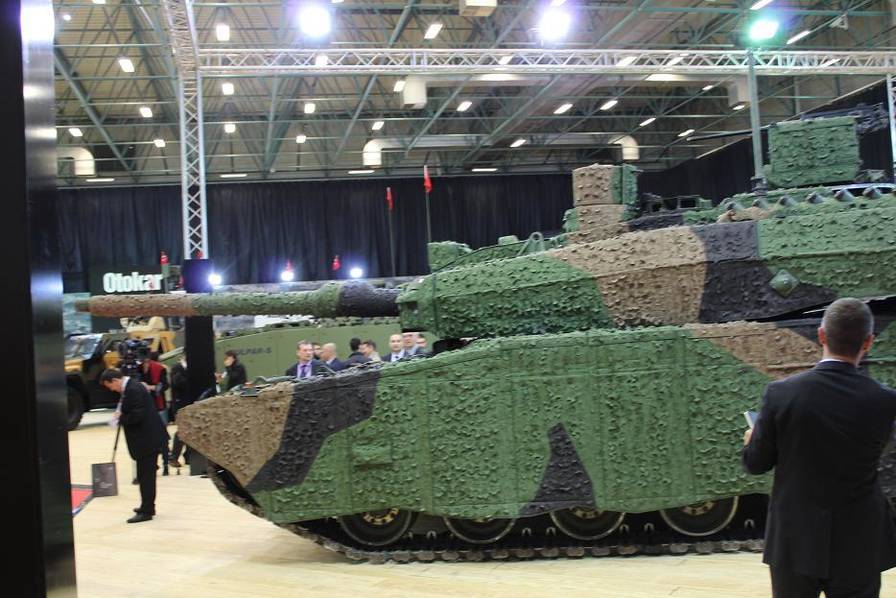土耳其OTOKAR公司在伊斯坦布尔IDEF-2017武器展览中,最引人注目的展品是"阿勒泰"坦克和"阿勒泰AHT"坦克。其中"阿勒泰"坦克采用一个特殊的迷彩斗篷降低了坦克的能见度,而"阿勒泰AHT",则使用中东战区特征的沙漠迷彩涂装。尽管土耳其军方称"阿勒泰"坦克是根据叙利亚作战经验自行研发的,但其研发原型实际是韩国K2主战坦克,尽管随后转向吸收德国技术,"阿勒泰"坦克整体技术结构仍与K2坦克相当类似。按照此前韩国媒体的说法,K2坦克有能力洞穿2辆中国99式坦克,但可笑的是在训练场上这款号称世界最强的坦克却败给了水泥坎。