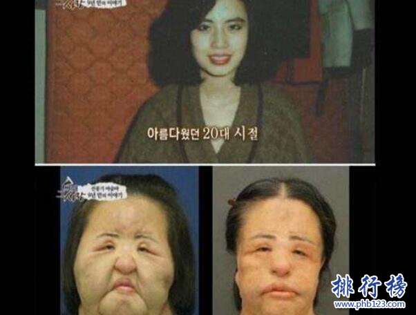 第一名就是大家熟知的“风扇大妈” 韩苗可,韩苗可最初也是个比较清秀的美女,但是她因为年轻时想要出名当明星,开始走上整容的不归路,然而不幸的是经历了一次次失败,从那时候起她就开始不断整容修复,最后整容医生不愿意给她提供任何整容,她甚至自己将食用油注入脸上。