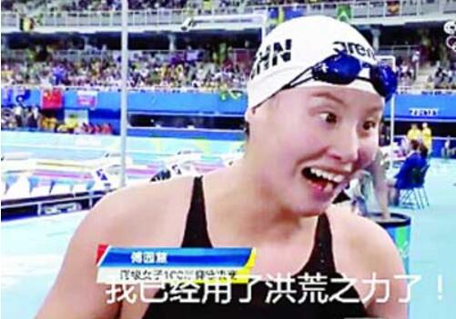 出处:2016年里约热内卢奥运会上,中国游泳队选手傅园慧在里约奥运女子100米仰泳半决赛中,选手傅园慧以58秒95、排名第三的成绩晋级决赛。傅园慧在赛后接受记者采访时说道:“哇!太快了,我打破了亚洲纪录了。我昨天把洪荒之力用完了,今天没有力气了。”