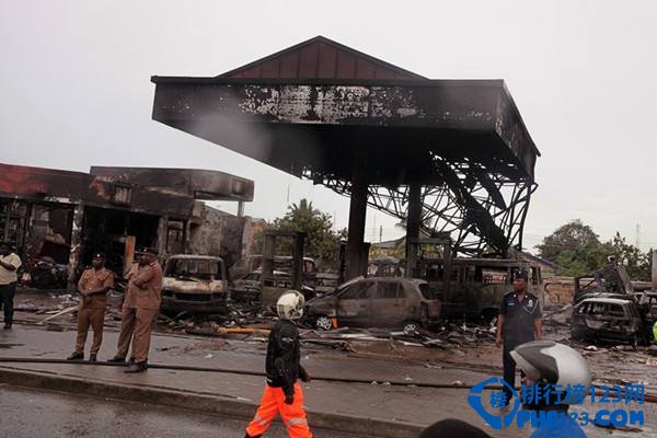 6月3日,加纳首都阿克拉市中心一处加油站发生爆炸并引发大火,死亡人数超过200人。图为安全人员在发生大火的加油站附近调查。