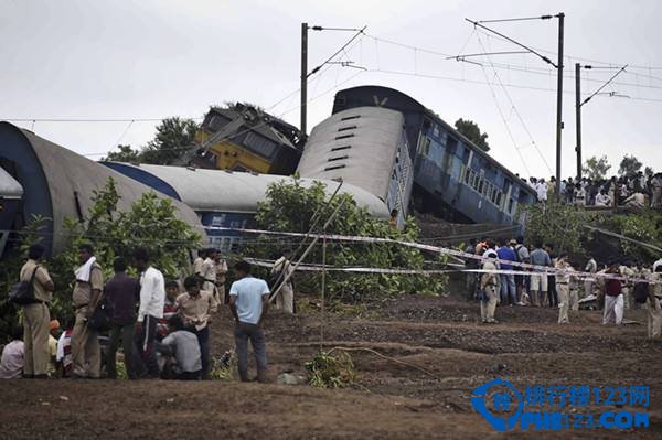 8月4日,印度一列从北方邦开往孟买的客运列车在中央邦通过一座桥梁时出轨。几分钟后,一列反方向的客运列车在同一地点出轨,数节车厢坠河。事故造成至少31人死亡,100余人受伤。图为人们聚集在列车出轨地点。