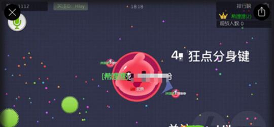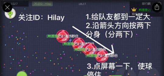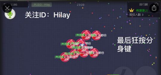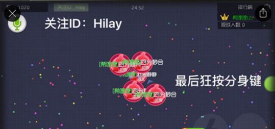 现将一个大的球想做分成四个球,然后再向上分身至八个后狂按分身键,注意分身之间一定要凑在一起,方便行动。