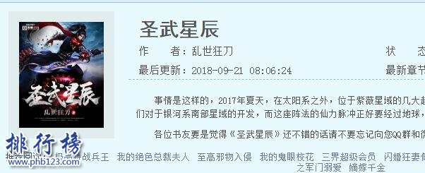 导语:很多人都比较喜欢看小说,但是现在小说数量是非常多的,有时候会看的人眼花缭乱的,不知道怎么选,下面排行榜123网小编看看哪些小说最受欢迎,下面和小编一起看看这些点击过亿的小说吧。