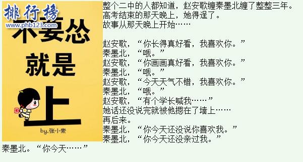导语:喜欢看小说的人很多,尤其是很多甜蜜蜜的小说了,可以征服很多不同年龄段女性,可能也是因为生活太平凡,需要找点不一样的东西吧。下面排行榜123网小编为你推荐十本十分甜蜜的小说,真的甜爆了。